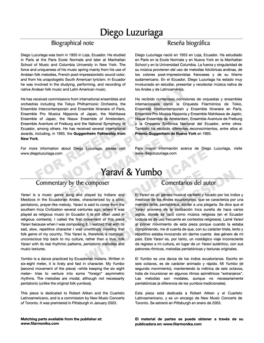 Yaraví y yumbo, for flute and string quartet