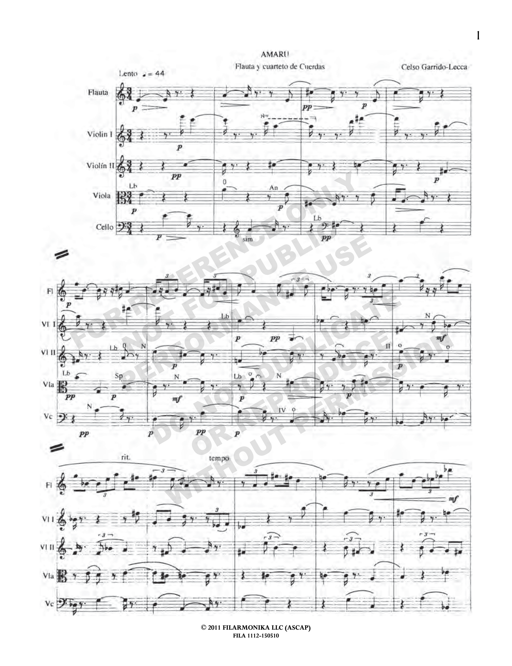 Amaru, for flute and string quartet