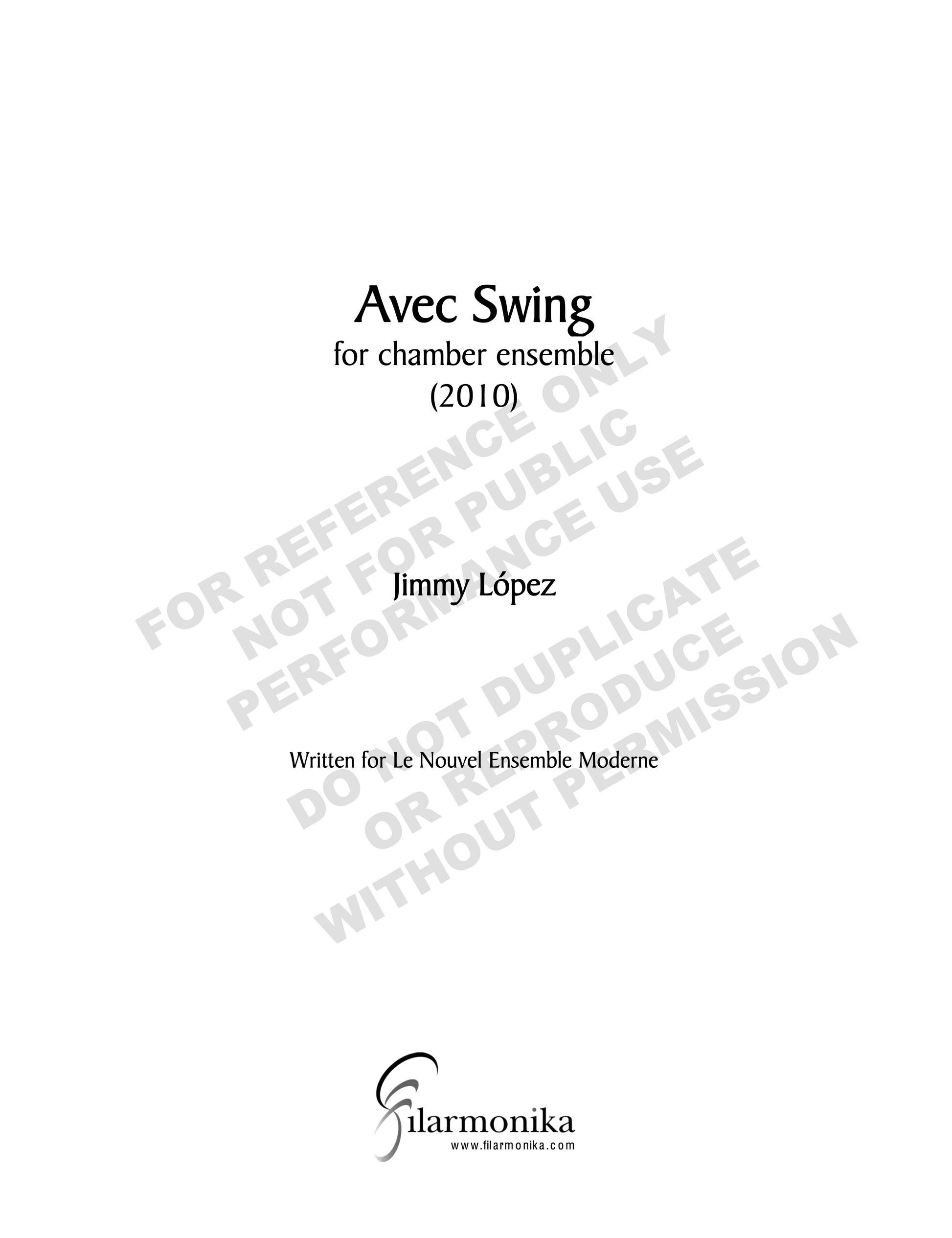 Avec Swing, for chamber orchestra