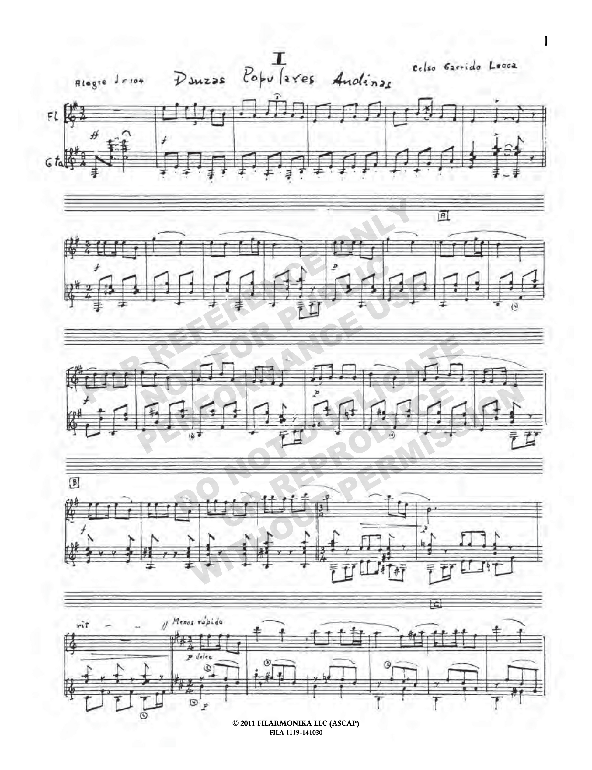 Danzas populares andinas, for flute and guitar