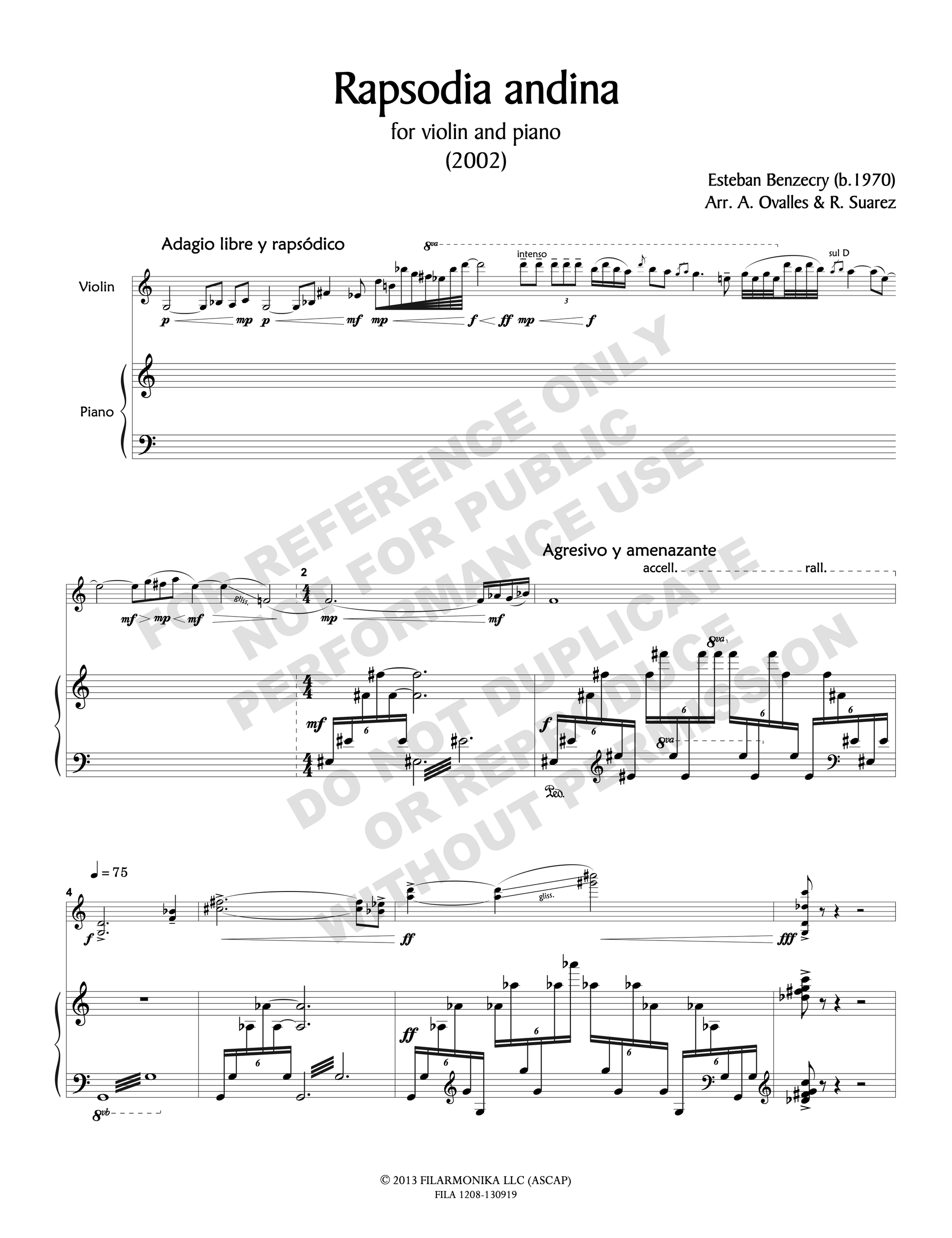 Rapsodia andina , for violin and piano