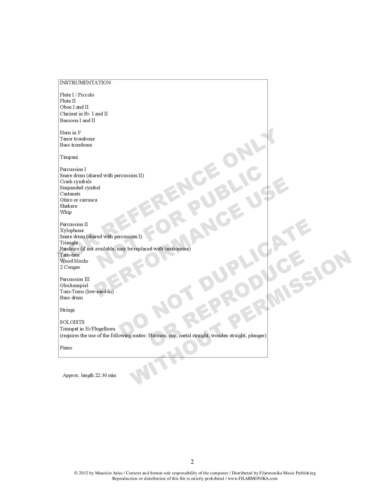 - Eb trumpet (flug), piano; 2(1).2.2.2-1020-tmp+3-str