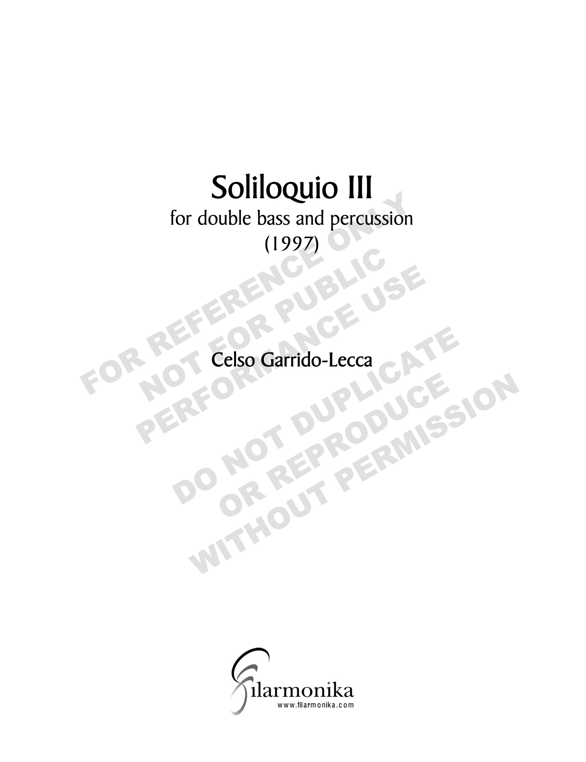 Soliloquio III, for double bass and percussion