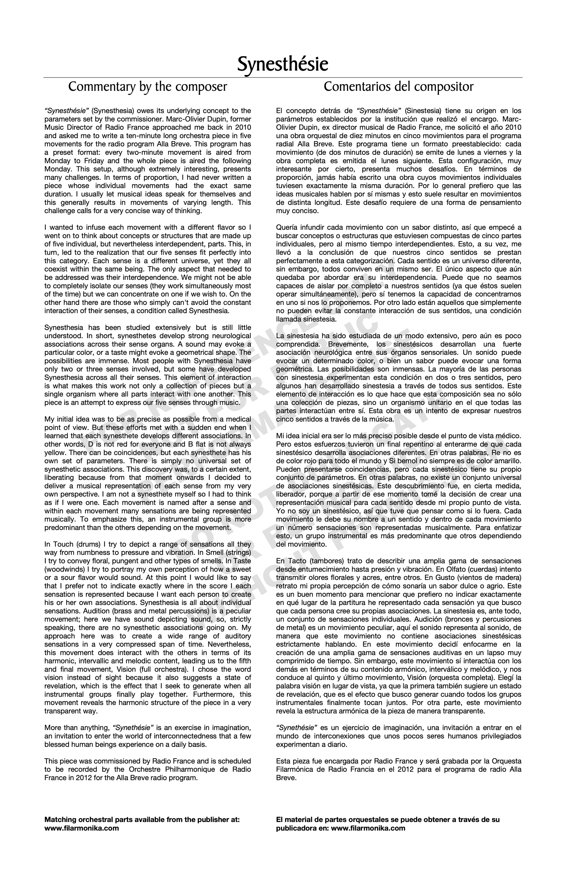 Synesthésie, for orchestra
